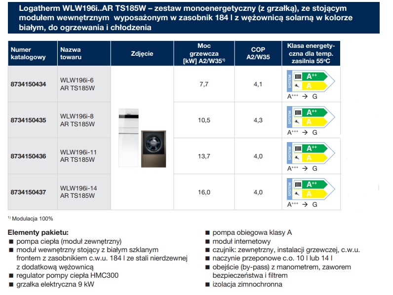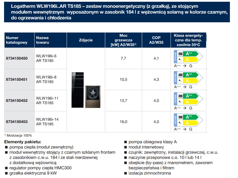 Buderus pompa ciepła powietrze - woda LOGATHERM WLW 196i-11 AR TS185