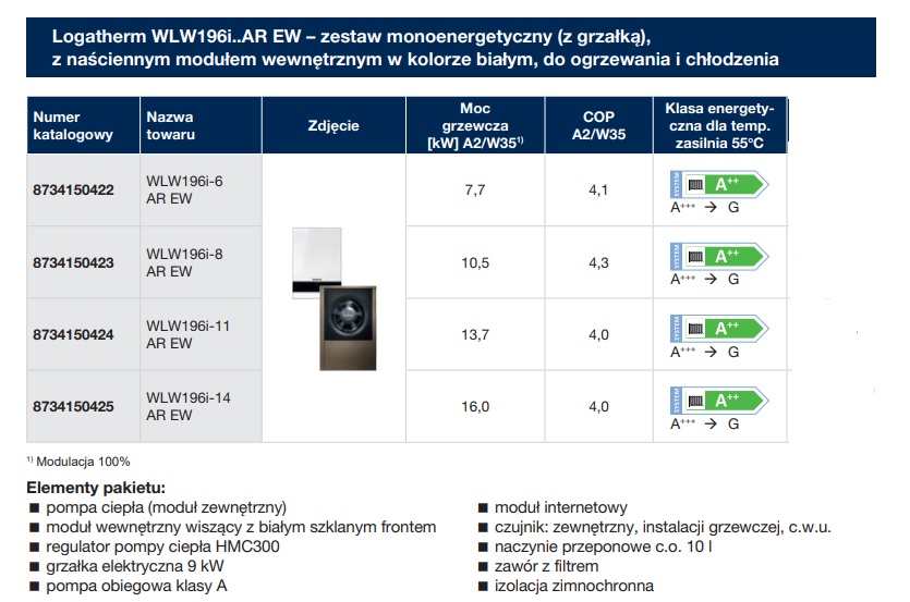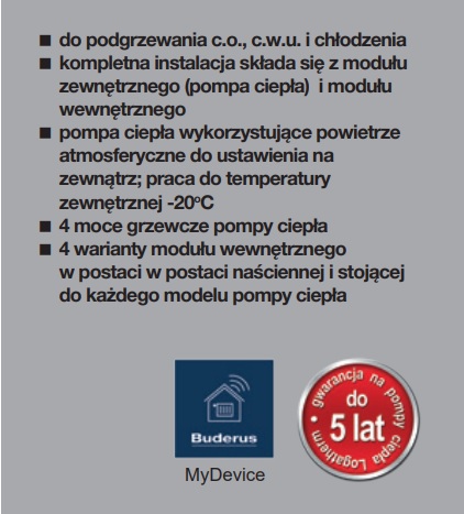 Buderus pompa ciepła powietrze - woda LOGATHERM WLW 196i-14 AR E