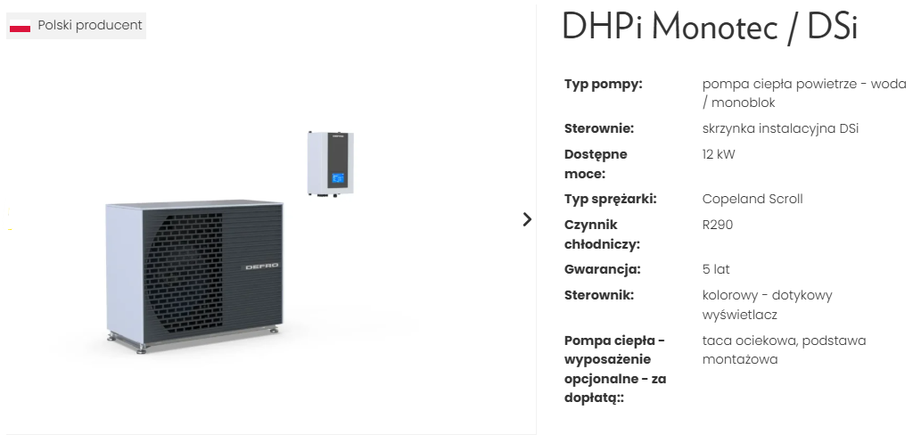 DEFRO pompa ciepła monoblok DHPi MONOTEC 12kW + skrzynka instalacyjna DSi