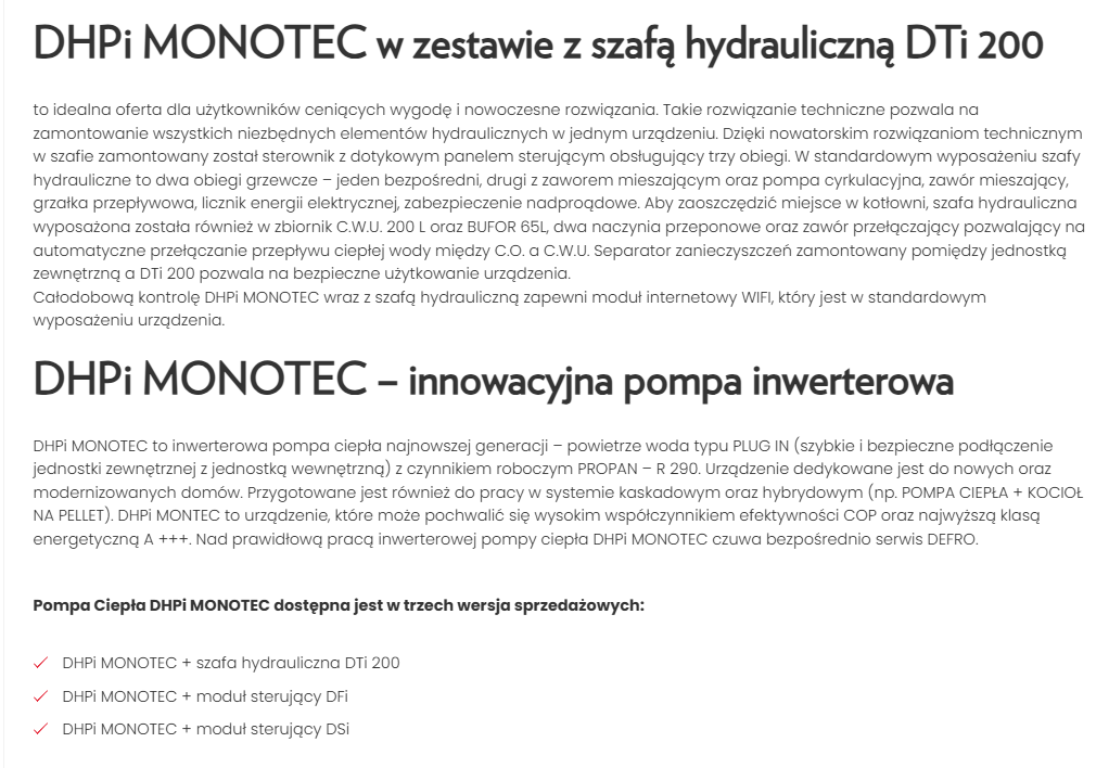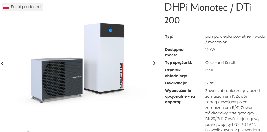 DEFRO pompa ciepła monoblok DHPi MONOTEC 12kW + szafa hydrauliczna DTi 200