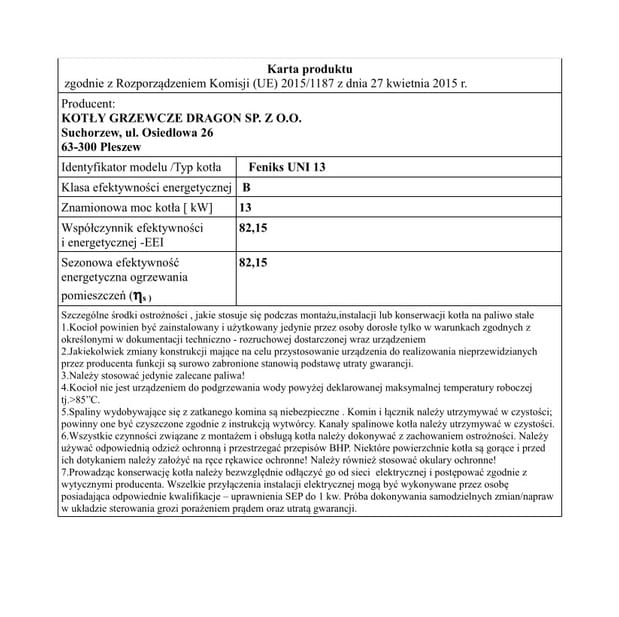 DRAGON Kocioł UNI FENIKS 13kW