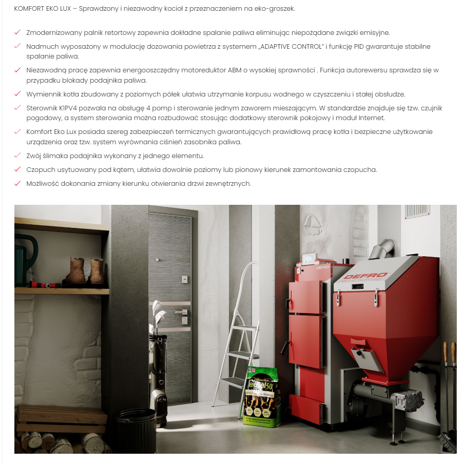 Defro kocioł na ekogroszek KOMFORT EKO LUX 15kW