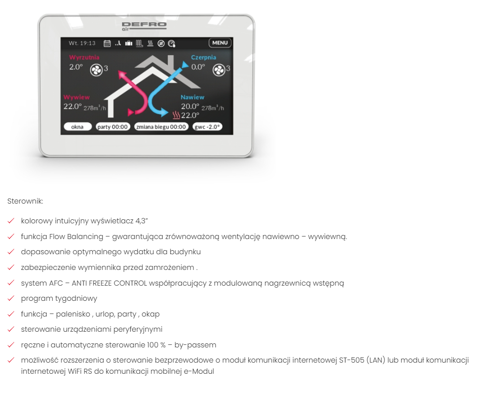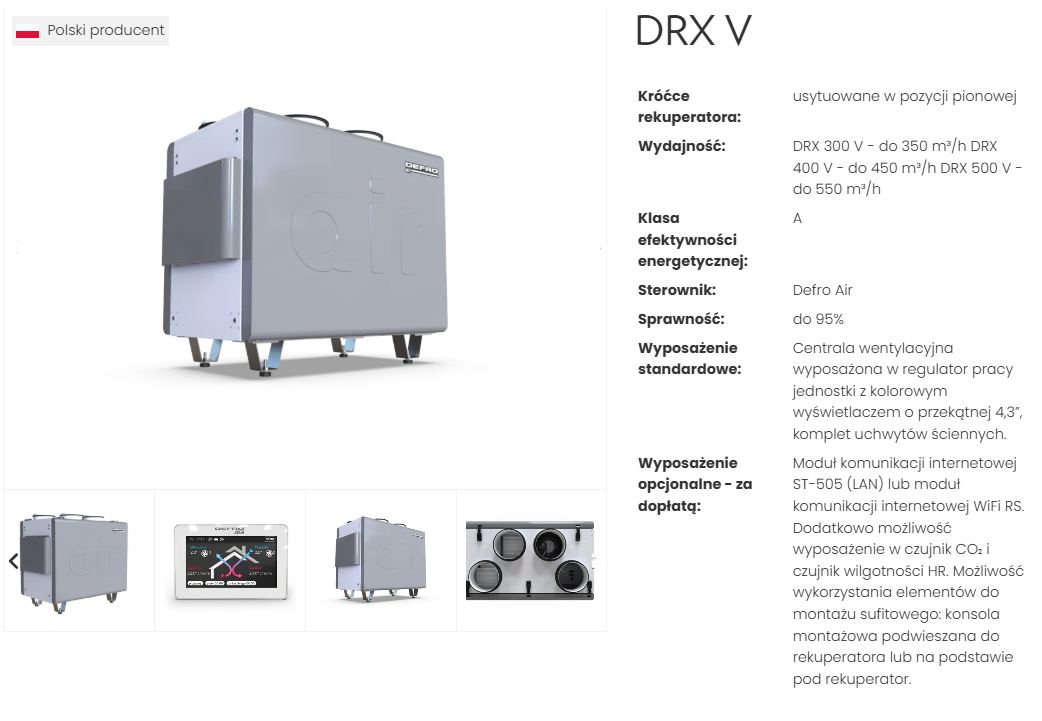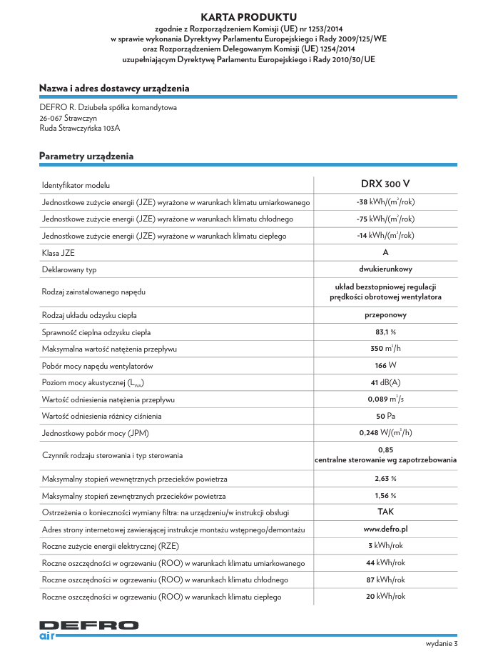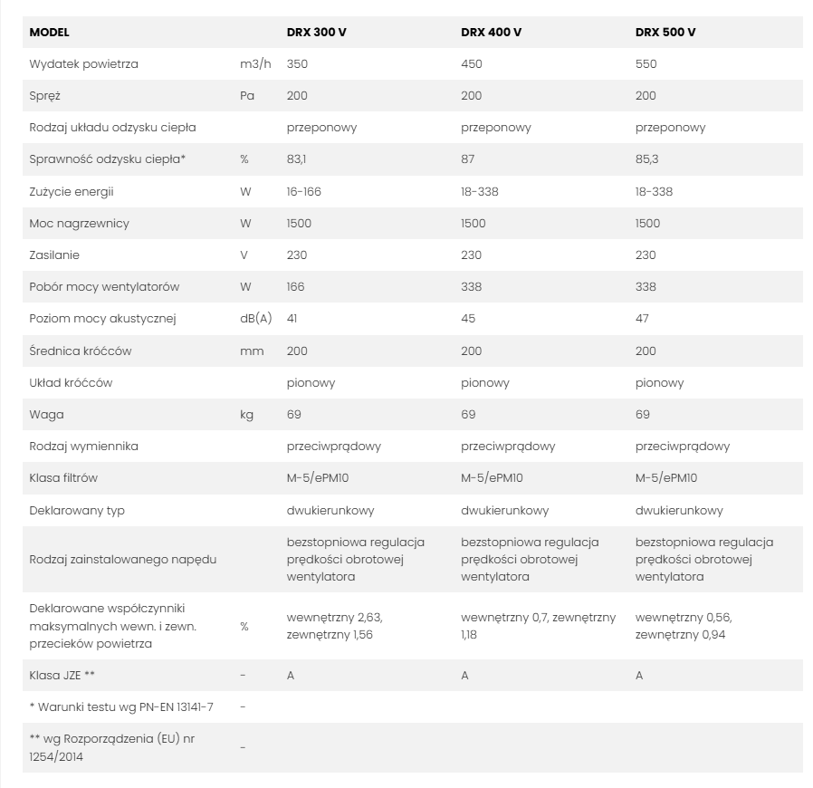 Defro rekuperacja DRX 300 V o wydajności 350m3/h