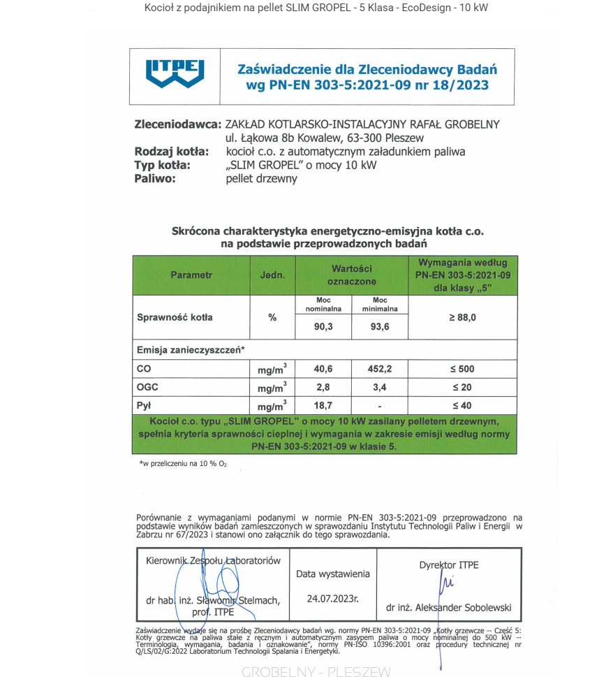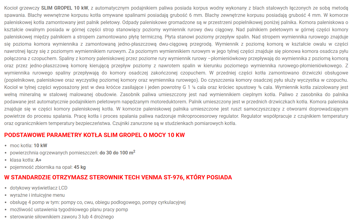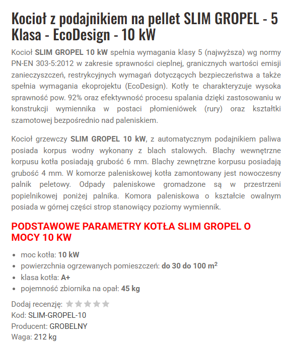 GROBELNY kocioł na pellet SLIM GROPEL 10kW
