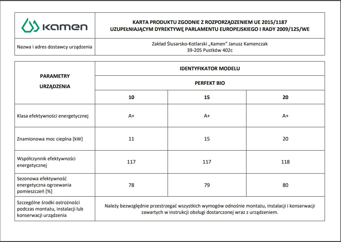 KAMEN Kocioł PERFEKT Bio na pellet 20kW