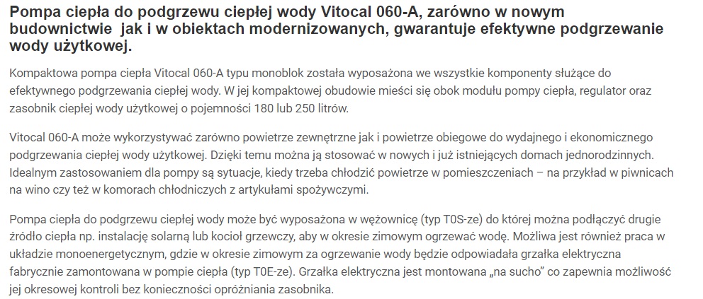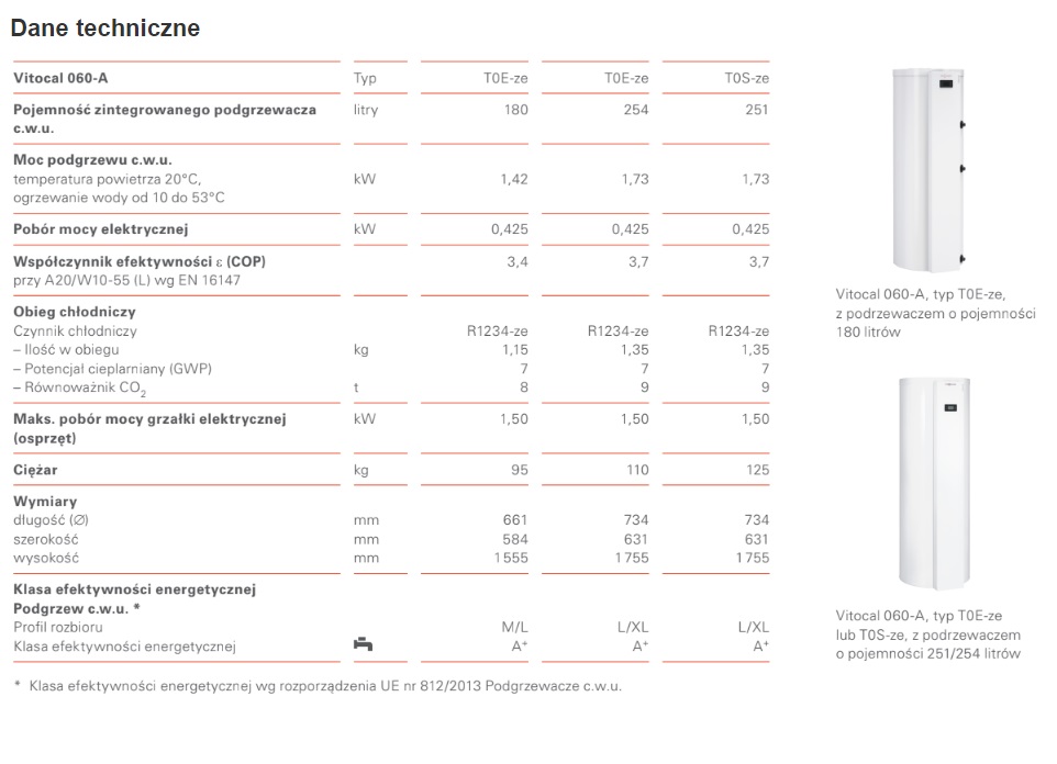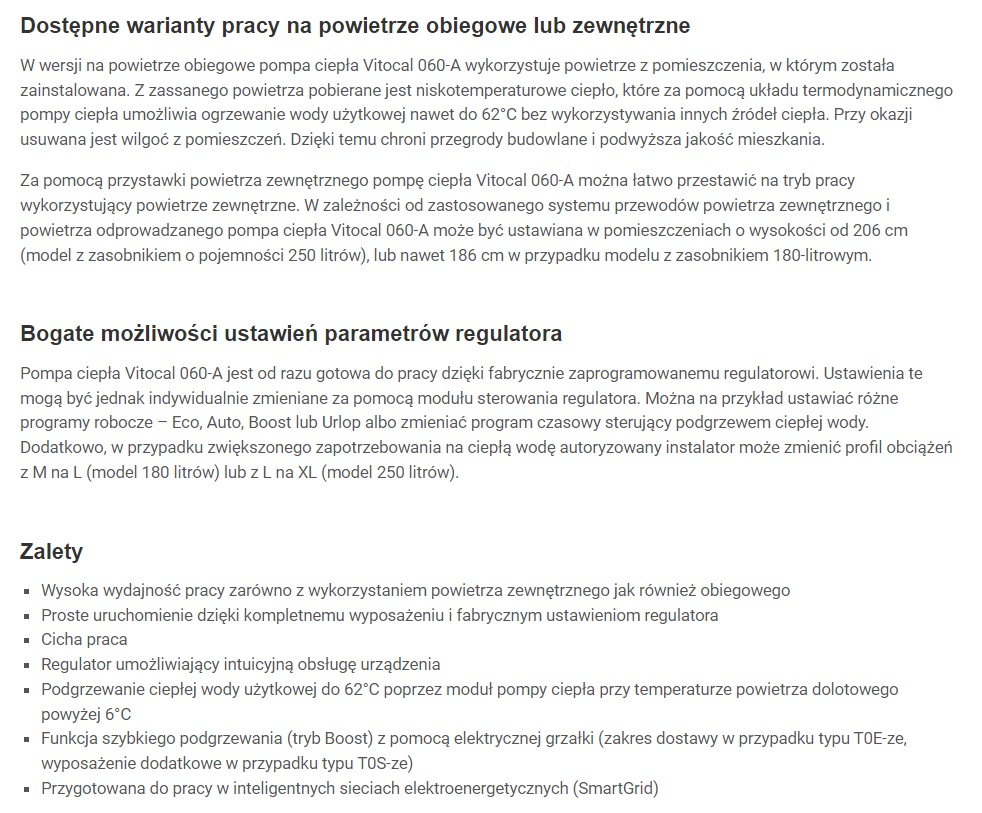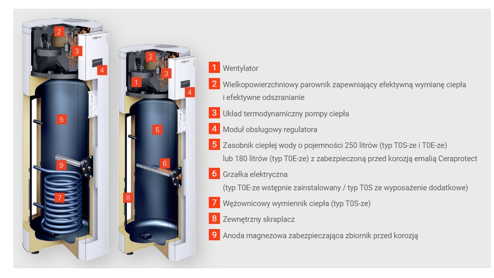 Viessmann Vitocal 060-A do podgrzewu wody użytkowej, typ T0E - praca na powietrzu obiegowym Z021985 zbiornik c.w.u. 254L