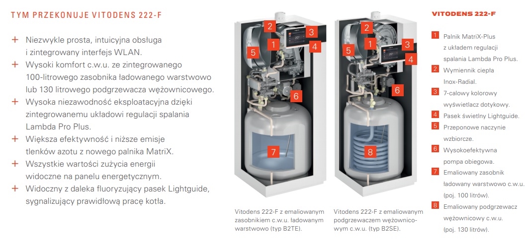 Viessmann Vitodens 222-F typ B2SE 32kW, zbiornik c.w.u. ładowany przez wężownicę (100l) z regulatorem E3, Z018502